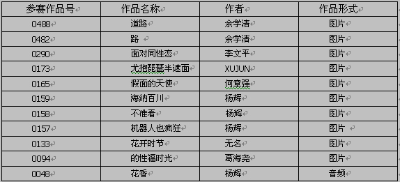 为了保证大赛的公平公正的原则,我们对网友投诉的作品进行审核,对确认为抄袭的作品,我们将取消其参赛资格,并公布抄袭者的名单,在此我们也希望参赛者能够自觉自律。以后我们还会将证实为抄袭的作品以下面方式公布,以便广大网友监督。