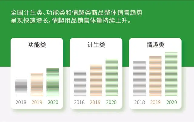 根据调查显示,超过35%的人表示他们愿意尝试,超过28%的人认为性玩具很愉快。80后、90后甚至00后已成为消费成人产品的新主力。仅有避孕套这一类成人用品才能达到100亿元的销售额,而全国的总销售额已超过1300亿元。