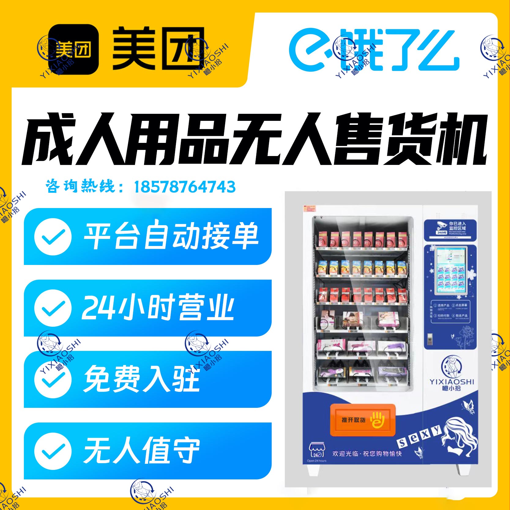 成人用品外卖店+美团饿了么+无人售货机/噫小拾品牌开店指导爱之嫒健康科技(广州)有限公司(合作品牌)
