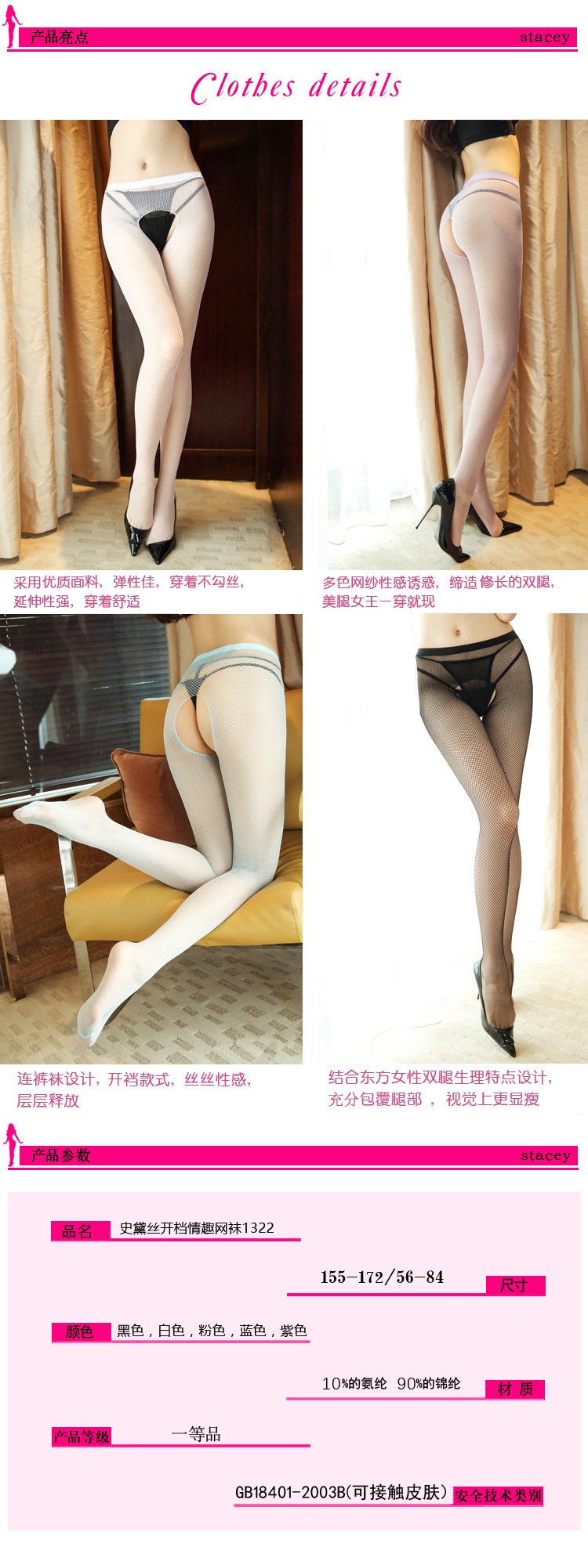 史黛丝情趣内衣 性感开档网袜 成人透视裤袜-情趣内衣