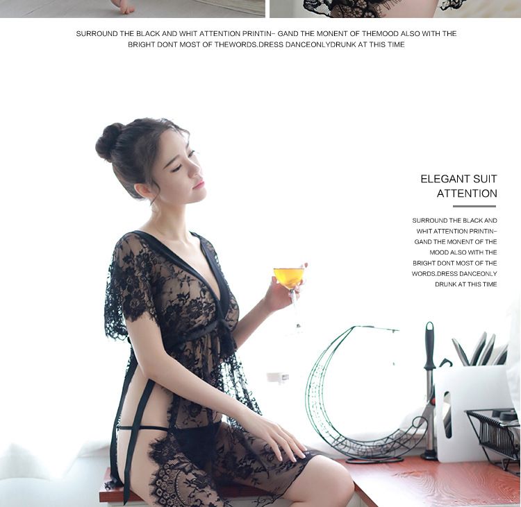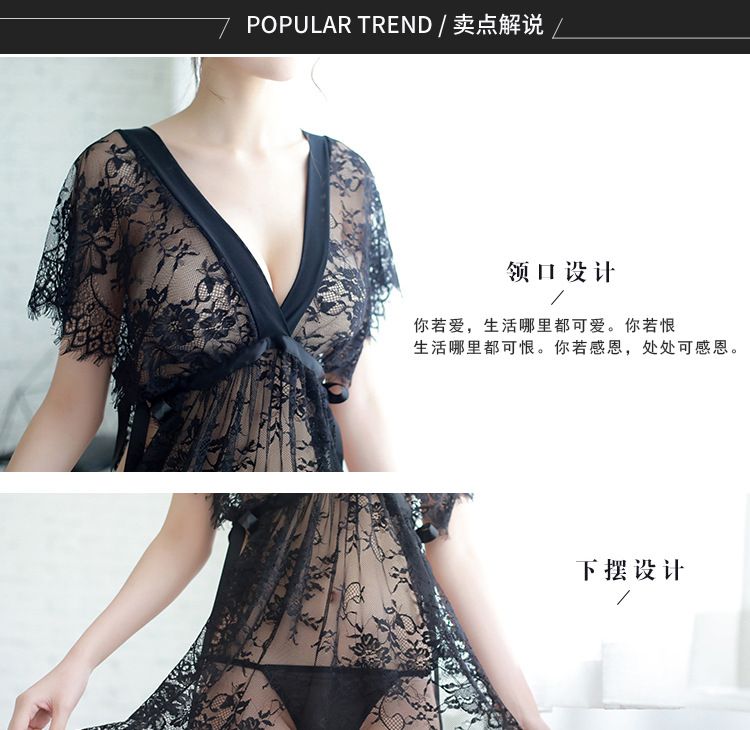 夜火蕾丝透视情趣内衣套装 7018