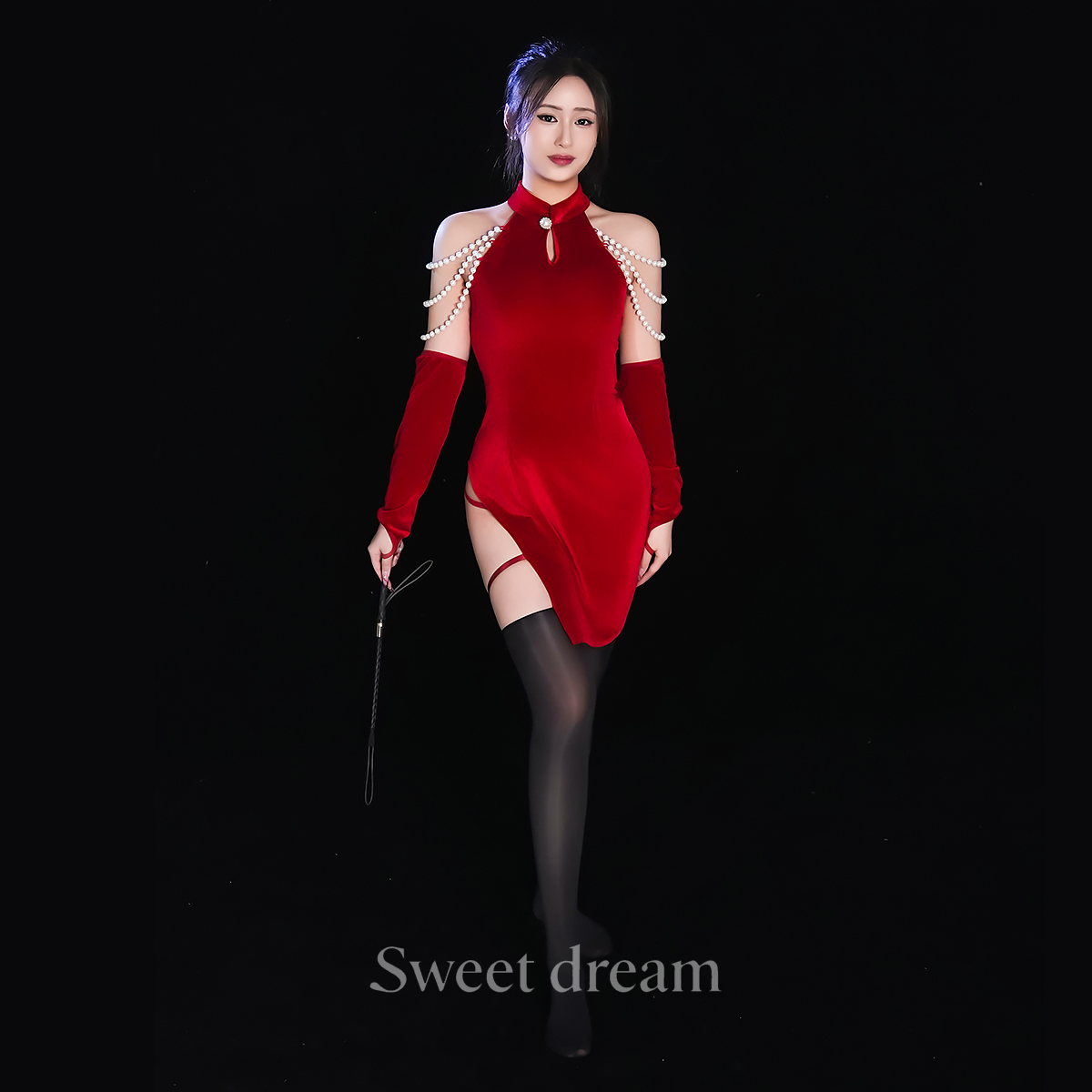枕趣胭脂劫珍珠旗袍红色情趣内衣