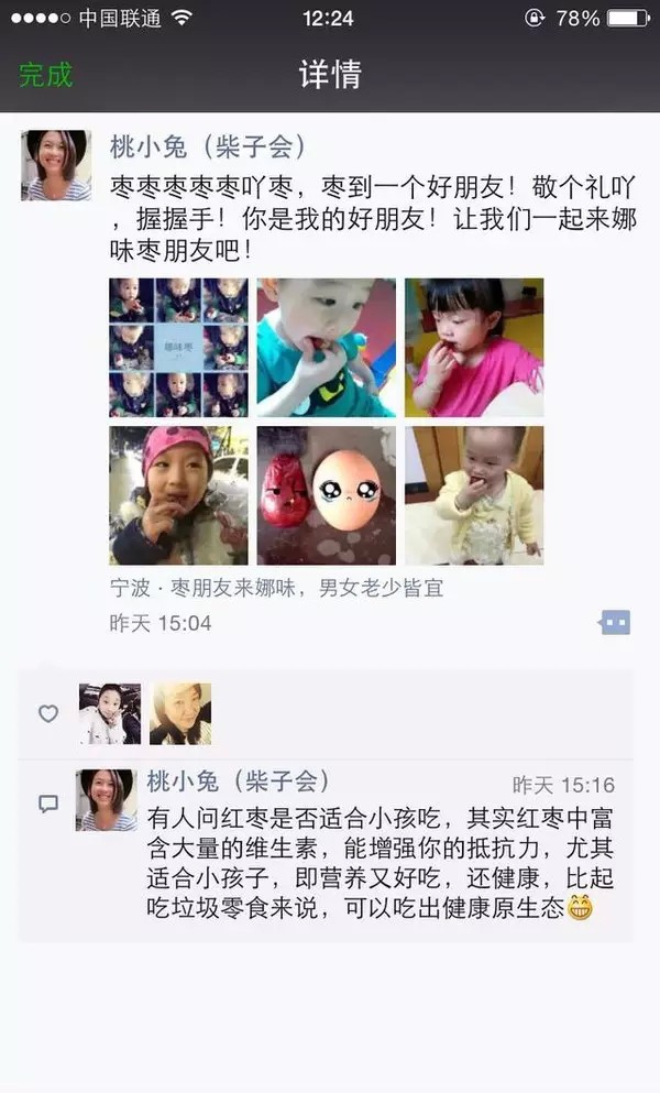 我相信很多朋友没有真正的把地址栏和评论这2个功能用好,从上图可以看出,地址栏是价值诉说,评论是枣子的分类简单介绍,还介绍了煲汤用什么枣,没有全部把这些内容放到朋友圈内容里面,我分析桃小兔的朋友圈,地址栏都是非常经典的阐述本条朋友圈的核心,让你有购买的欲望!