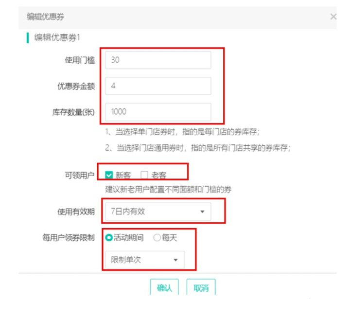 2可设置多个店内领券,门槛不同,满足不同的顾客群体,提高下单转化率