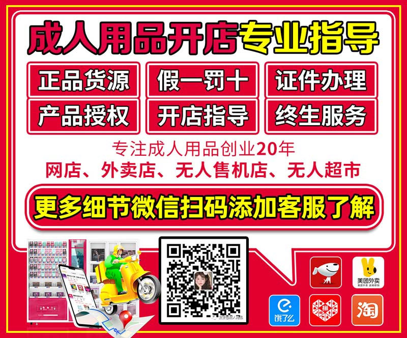 随着成人用品行业的发展,现在的成人用品开店有多种套餐可选:无人售货机店、无人仓、美团外卖、饿了么、淘宝、拼多多、京东、天猫、阿里巴巴、微信小程序、独立商城等。 提供营业执照、二类医疗办理指导。授予代理商开网店、实体店资质证件,省去很多麻烦。