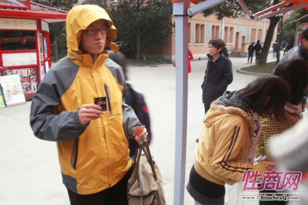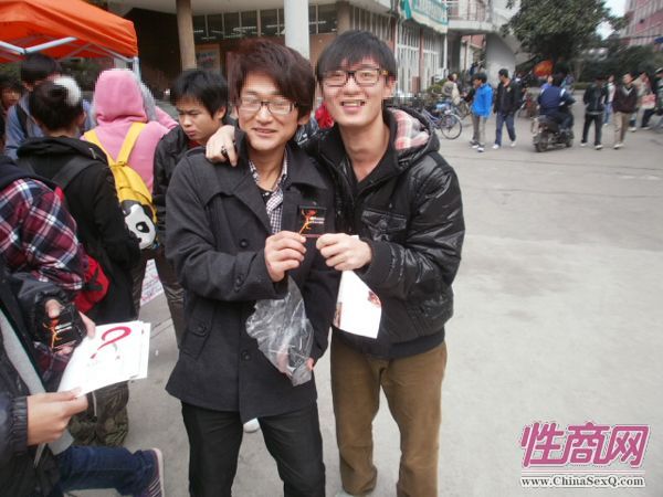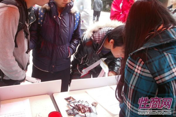 在活动的现场,很多同学前来观看DKT安全套使用的演示