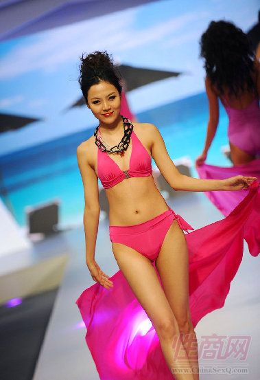 上海国际内衣泳装秀似成人展:模特奔放尺度大