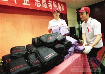 据悉,由中华红丝带基金提供的“红丝带健康包”包括手套、毛巾、安全套、知识扑克、海报、水杯、笔记本等生活用品和宣传材料。高校志愿者将深入企业、工厂、工地和社区,与农民工面对面交流,向他们宣传防治艾滋病知识。