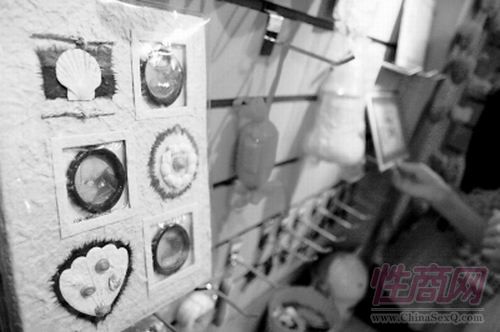 根据刘女士提供的线索,记者来到沙坪坝三峡广场这家卖安全套首饰品的小店。该店店面不大,货架上摆满了各类用安全套做成的饰品,有手机链、棒棒糖、钱包套、笔记本、获奖证书、刺绣护身符、喜糖等数十个品种。醒目位置还摆放着一个身上戴着各种安全套饰品的塑料模特。