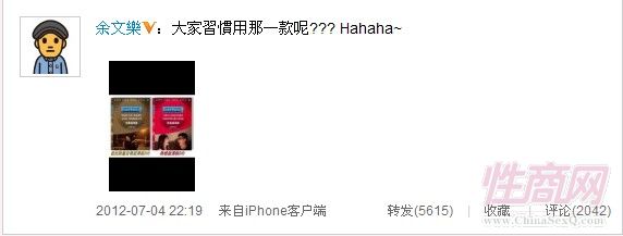 余文乐率先曝出这两款设计的DVD笑着询问大家更喜欢更习惯用哪一款呢?杨千嬅见此设计的DVD后也搞笑回应道:“Dum dum dum dum dum.... 安全要有一‘套’”一语双关的推荐大家应该有一套《志明与春娇》新款设计的DVD。截止今天发稿前余文乐的此条微博已被转发5539次,评论有2014条。