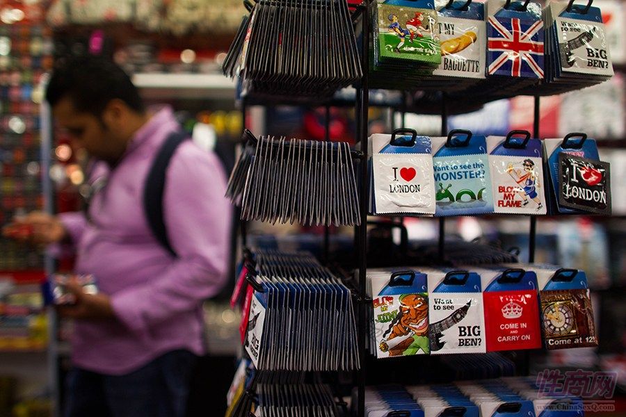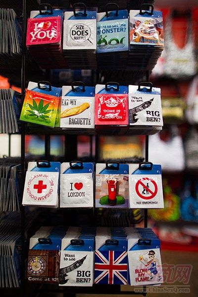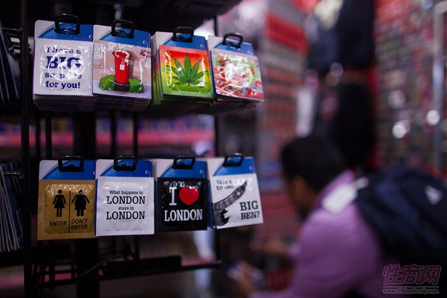 图为店内出售的以伦敦主题为主的避孕套